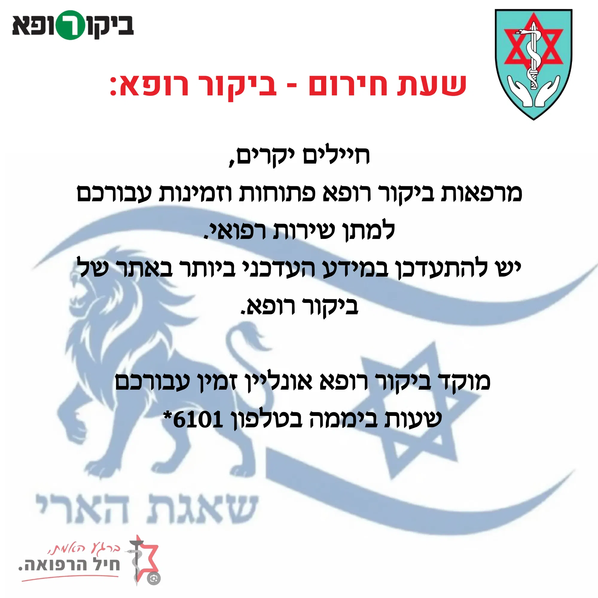 לכל המידע על שירותי ביקור רופא - לחץ כאן